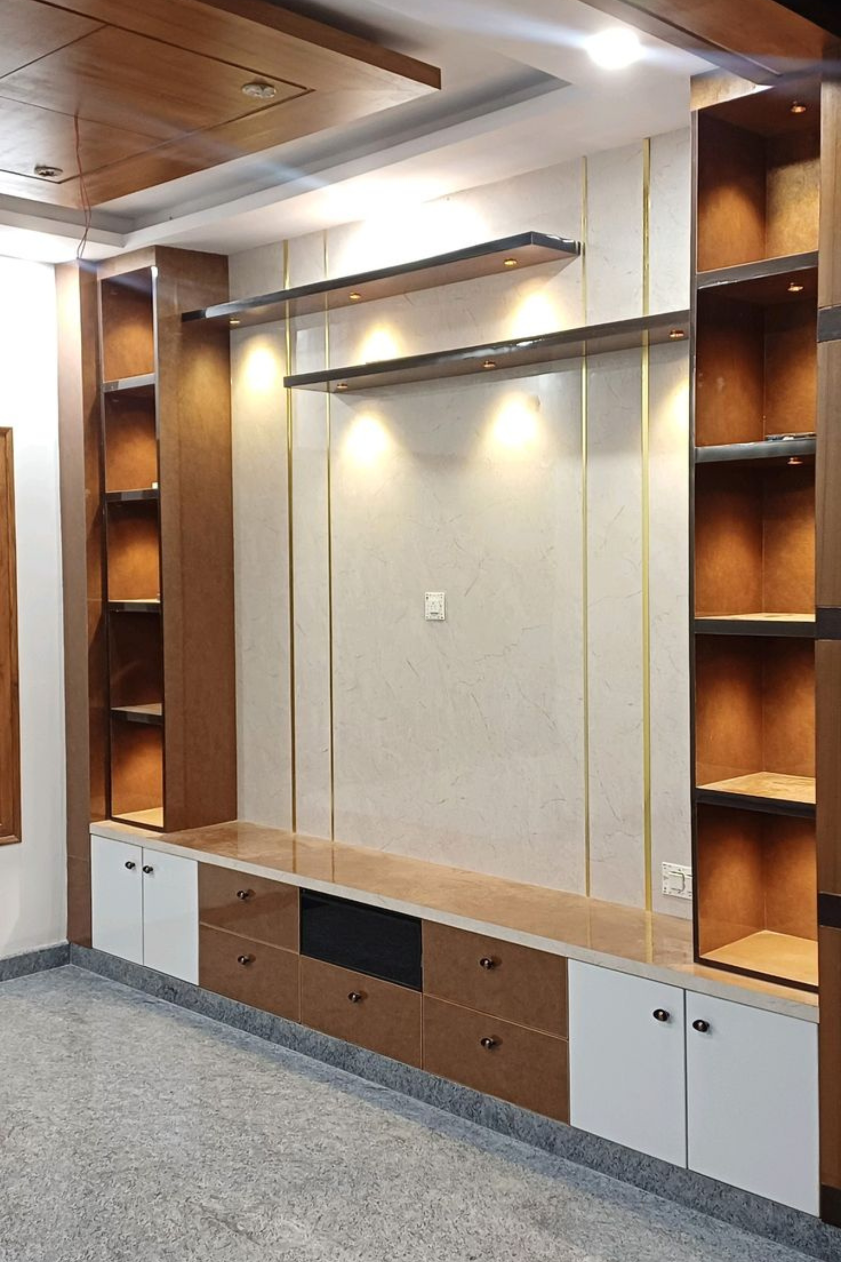 We create stylish false ceiling designs that enhance the beauty of your interiors while improving lighting and ambience. Our ceilings are designed with modern patterns, premium materials, and smart lighting concepts to give your space a sophisticated and elegant look.